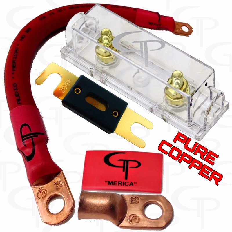 GP Audio 300 AMP ANL Fuse Holder INLINE Block BATTERY INSTALL KIT 2/0 AWG GAUGE COPPER R