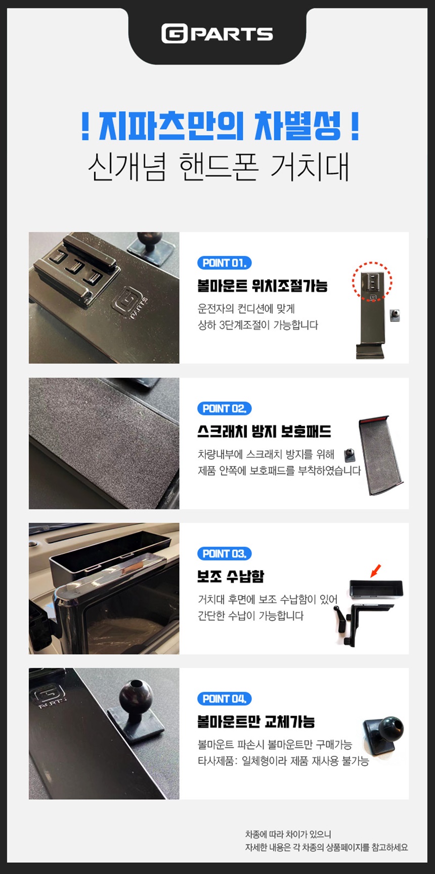 본 제품은 핸드폰 거치대 마운트만 판매되는 제품이며,