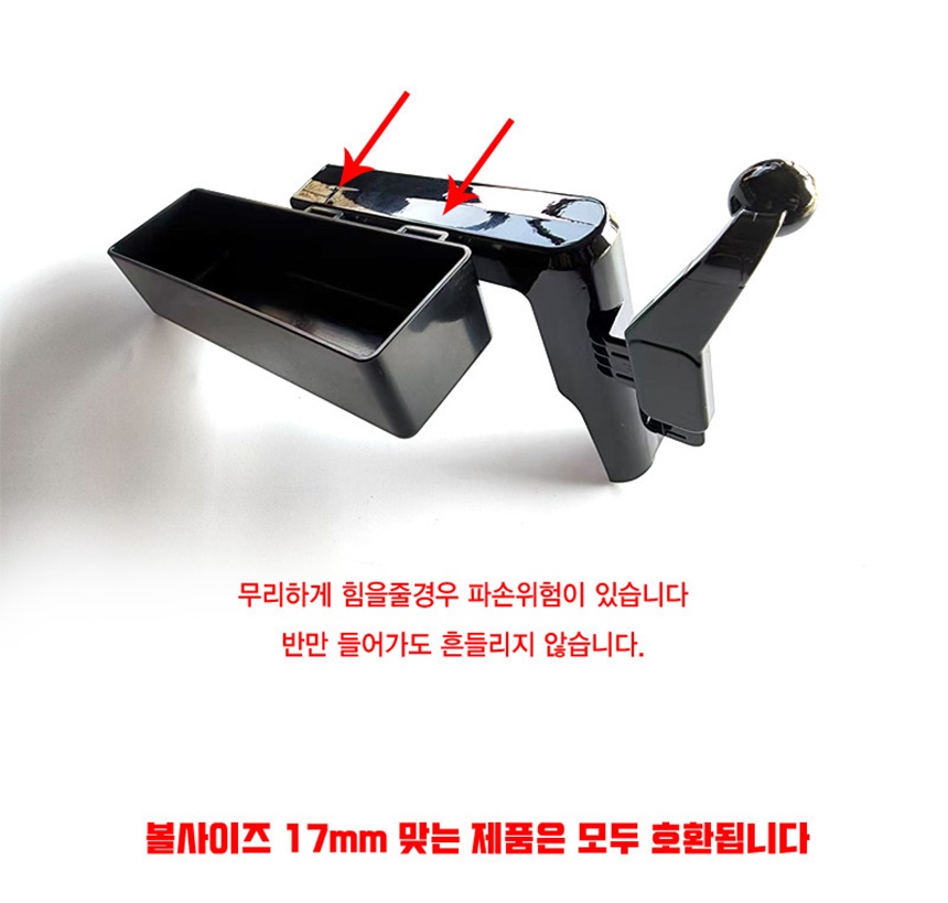 핸드폰 거치대 마운트제품의 볼 사이즈는 17mm입니다.