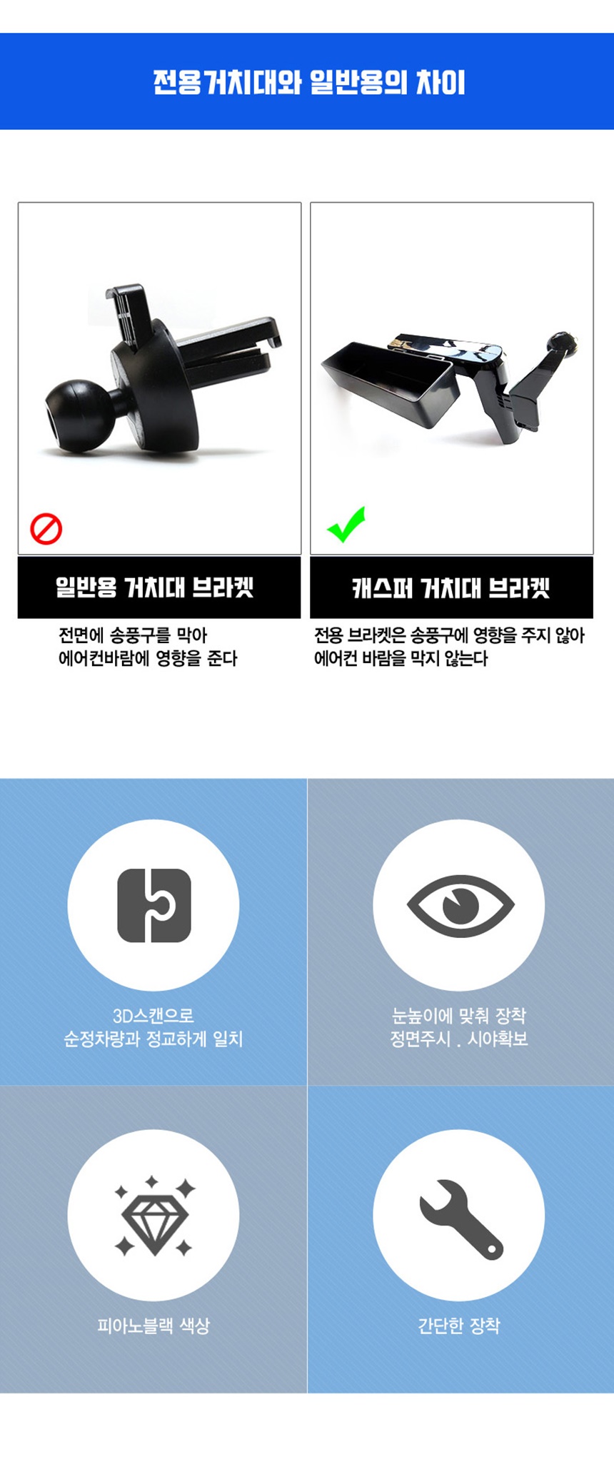 지파츠 캐스퍼 전용 핸드폰 거치대는 정밀스캔을 통해 제작되어 단차없이 적용가능하시며,