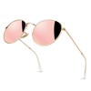 GQUEEN MFF7 Retro Round Mirrored Polarised Sunglasses for Men and Women UV400 Protection, Gold Pink (Mirrored Lens)
