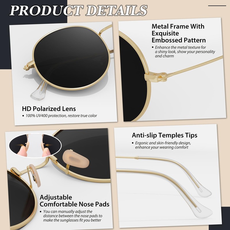 - Exquisite design – the round sunglasses collection remains true to its classic look, while it is constantly adjusted according to the current fashion.