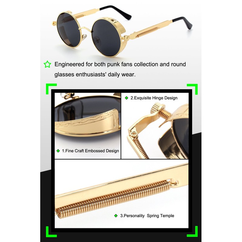 GQueen MTS2 Steampunk Retro Round Polarised Sunglasses - m