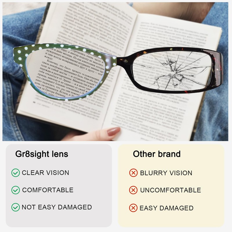 - Comfortable & Convenient: Gr8sight Specs for women have full ergonomic temples and a one-piece nose pad that won’t slip off, are pressure-free, and leave no red marks for long-lasting comfort.