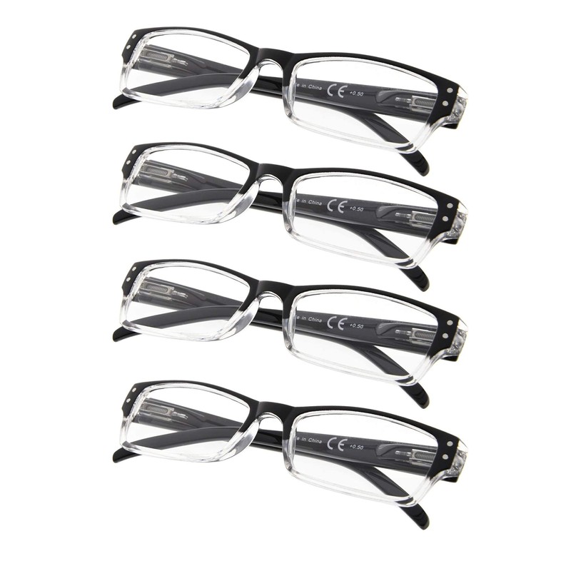Gr8Sight 4-pack Rectangular Reading Glasses with Spring Hinges (BlackClear)