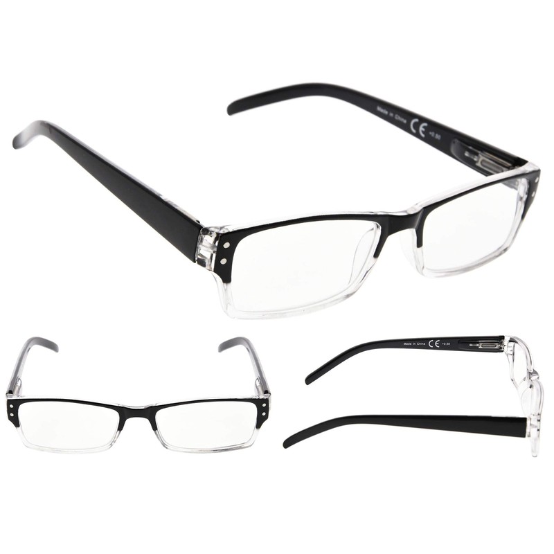 Gr8Sight 4-pack Rectangular Reading Glasses with Spring Hinges (BlackClear)