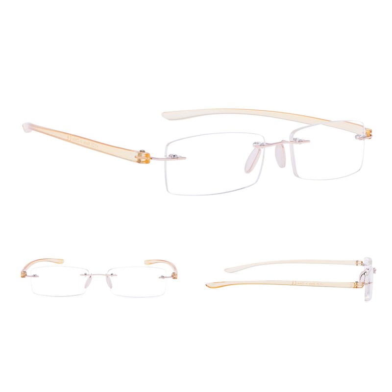 Gr8Sight 7-Pack Rimless Reading Glasses with Small Lenes (YellowArm,+4.00)