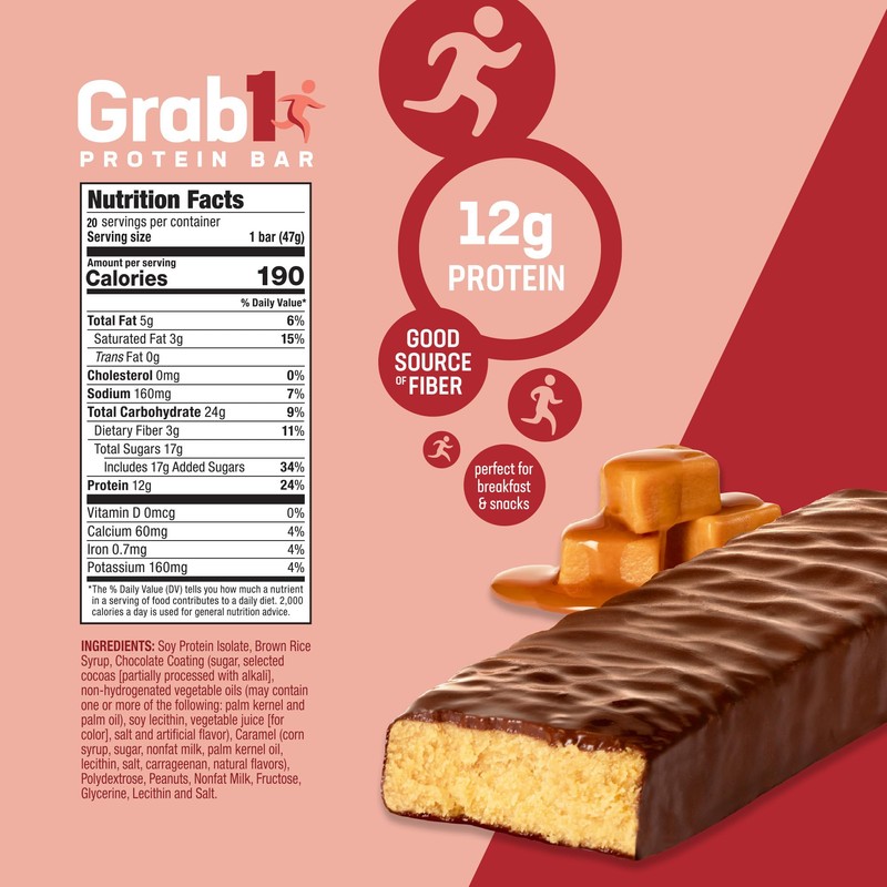 - BETTER FOR YOU- Low in calories and fat but rich in iron, fiber, and protein, Grab1 Bars are also made with zero hydrogenated oils and high fructose corn syrup so that you can feel good about the snacks you eat.