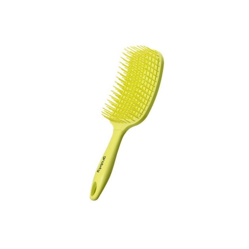 This brush with air hole system is ideal for brow-drying, detangling, smoothing and styling hair, including volumizing roots and taming down sides. Densely packed 178 large bristles easily glide through knots, without painful tugging or pulling. These firm yet flexible bristles smoothly glide over your scalp, adjusting to its unique shape and curves. Plus, this brush can also be used as a wet brush for shampooing.