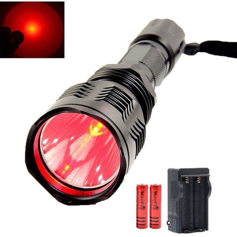 - 【Super Bright & 1 Modes】: Red light hunting flashlight with XRE R2 emitter. Max output: 10000 lumens. This Single mode red light flashlight, Easy to use On/Off push button switch is specially designed for night activity.