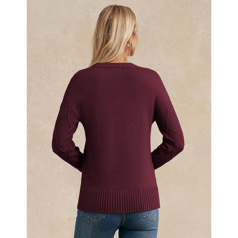 GRACE KARIN Cable Knit Sweater Women Long Sleeve Side Slit Knit Pullover Crewneck Top for Fall Winter Outfits(S,Wine)