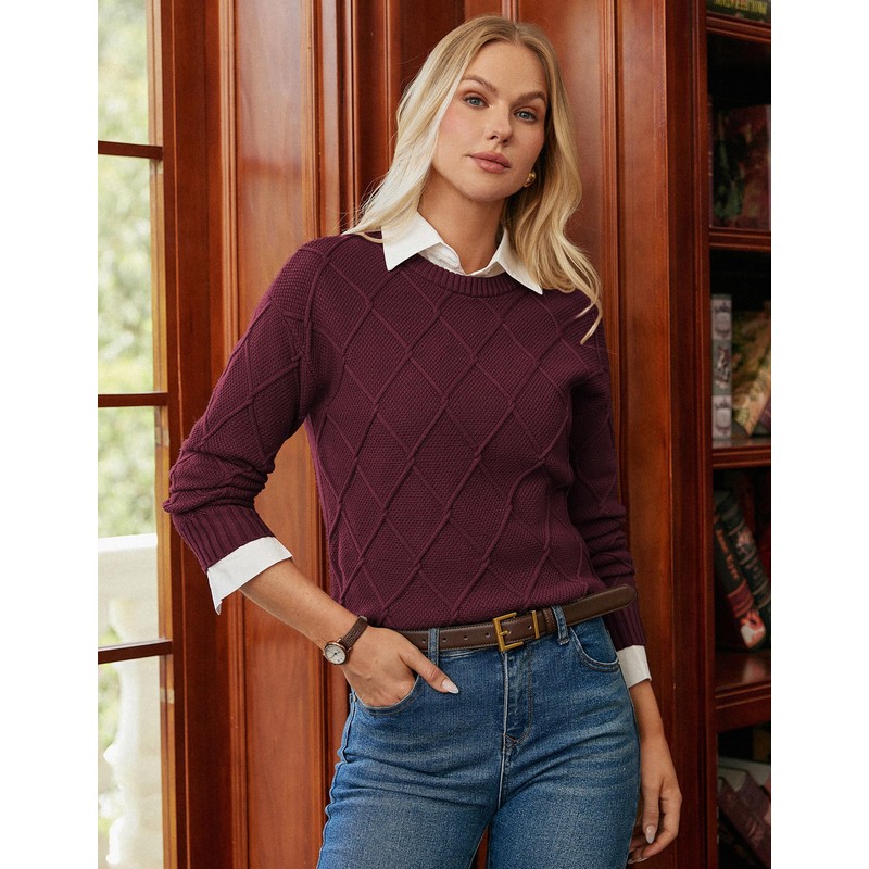 - Classic Cable Knit Design: Women's Cable Knit Sweater features intricate front diamond patterns with soft fabric for superior comfort, blending timeless elegance with cozy warmth for fall and winter