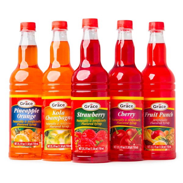 - Grace Kola Champagne, Cherry, Strawberry, Fruit Punch & Pineapple Orange - Jamaican Flavored Syrups - 25.5oz - 5 Pack Bundle