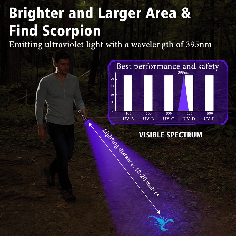 - Wider and Brighter Range: This UV flashlight has 51 UV LED that emit UV light with a wavelength of 395nm, covering a larger area and providing better brightness, which can help you locate the area more quickly; Make your cleaning more time-saving, labor-saving, and cost-effective, saving on professional cleaning costs
