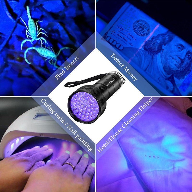 - Small & Multiple Use: Small in size, portable, equipped with a wrist strap, can be worn on the wrist or hook to prevent falling; Can detect food stains, verify currency, official documents, driver's license, detect gas leaks, car stains, detect whitening agents & fluorescent agents in cosmetic paper products; It is also very suitable for outdoor activities, such as searching for scorpions and minerals