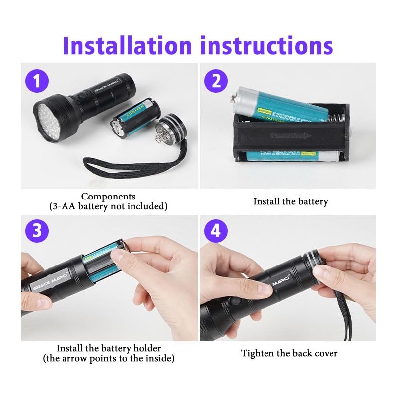 Grace Marci UV Flashlight Black Light, 51 LED 395 nm Blacklight, Pet Urine Detector for Dog/Cat Urine, Dry Stains, Bed Bug, Scorpion,Dry Pet Stains (51 LED flashlight)