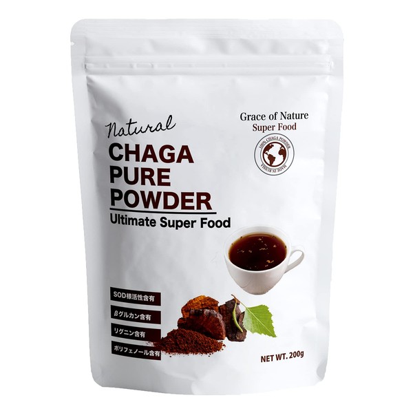Grace of Nature チャーガ パウダー 粉末 無添加 チャーガ茶 カバノアナタケ 白樺のキノコ ロシア産 200g