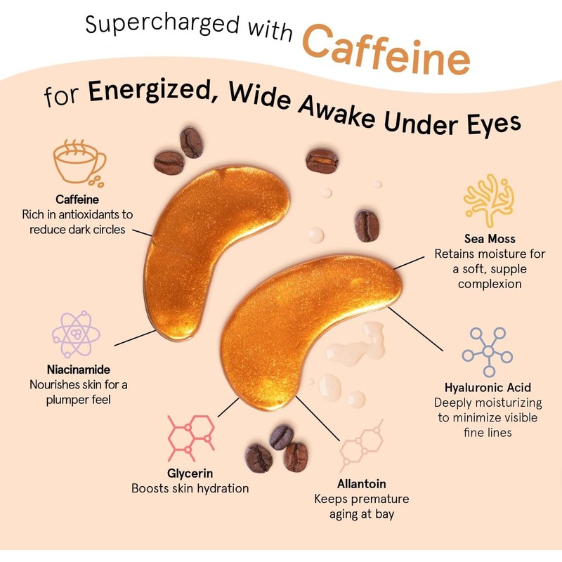 - Like a Shot of Espresso for Weary Eyes - Feeling sluggish? Our caffeine under eye patches are the perfect energizers for early mornings. They zap away puffiness and diminish dark circles, leaving you with a fresh, wide-awake look in just 15 minutes.