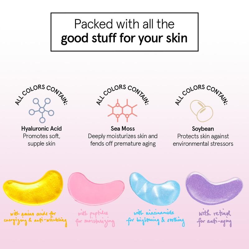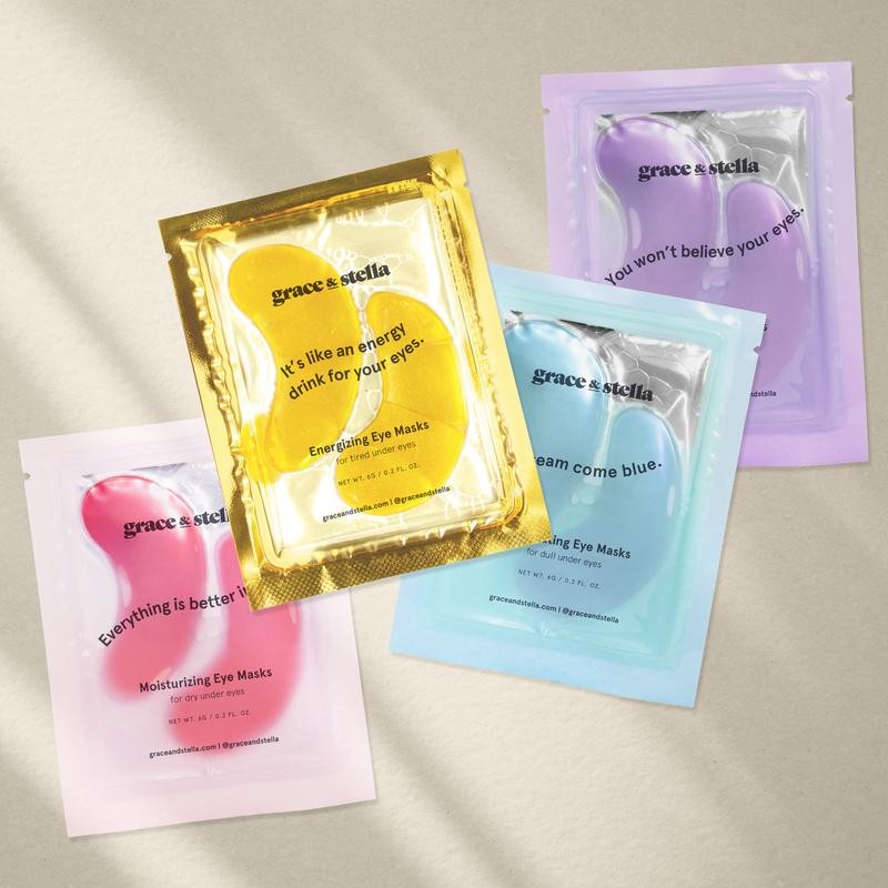 - grace & stella under eye masks for dark circles puffy eyes wrinkles hydrating firming smoothing pink blue purple giftsets