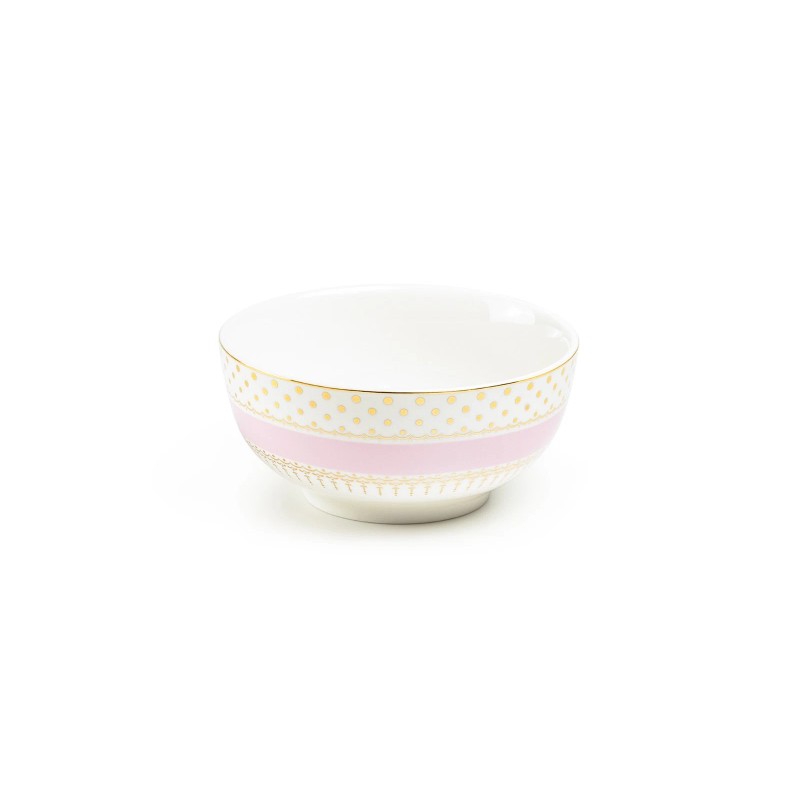 Grace Teaware Pink Stripe with Gold Dots 6" Fine Porcelain Bowl