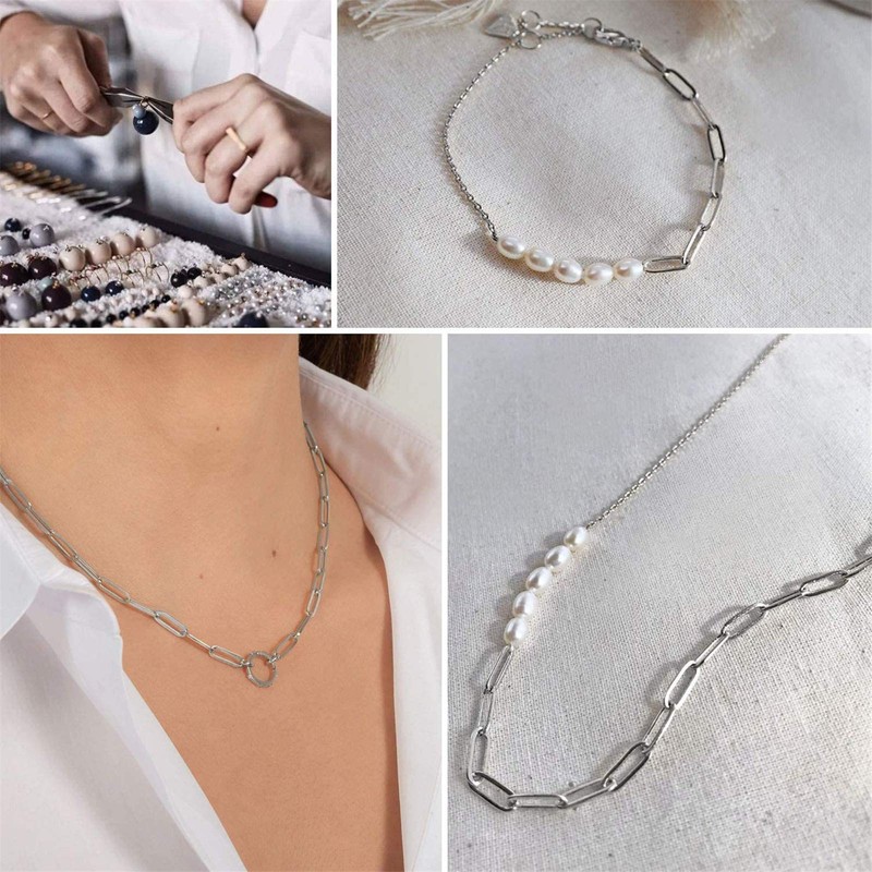 GraceAngie 20 Feet Stainless Steel Paperclip Chain 4x12mm Link Chain Bulk for Jewelry Making (Silver)