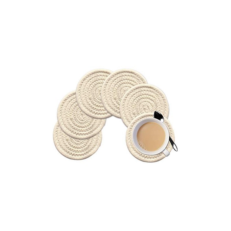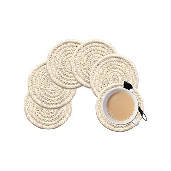 Gracelife 6pcs Cup Mat Pure Cotton Thread Weave Round Drink Hot Pads Mats Set Absorbent Scald-proof Drink Coasters (Beige)