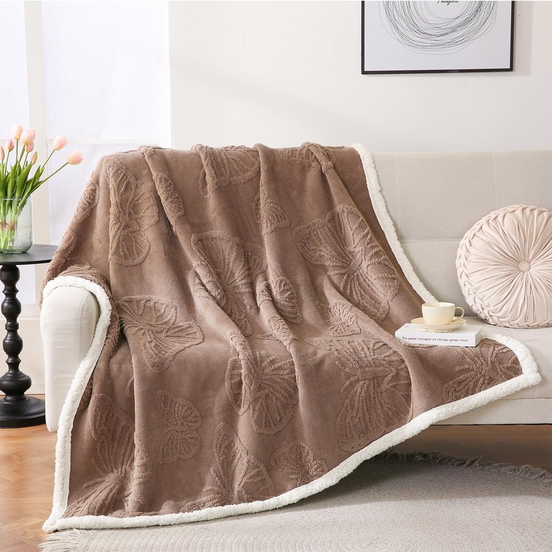 Gracelife Blanket for Women, Sherpa Throw Blanket for Couch, Flannel Butterfly Cozy Soft Blanket for Bed - Fleece, Coffee, 80x90 Inches