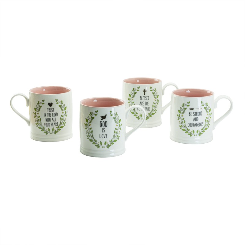 Gracie China by Coastline Imports Inspirational Religious Verses Ceramic Coffee Mugs 18-Ounce (Assorted Set of 4), Cream, Green, Pink, (BLT19Q137BFL/GOL/STG/TRT)