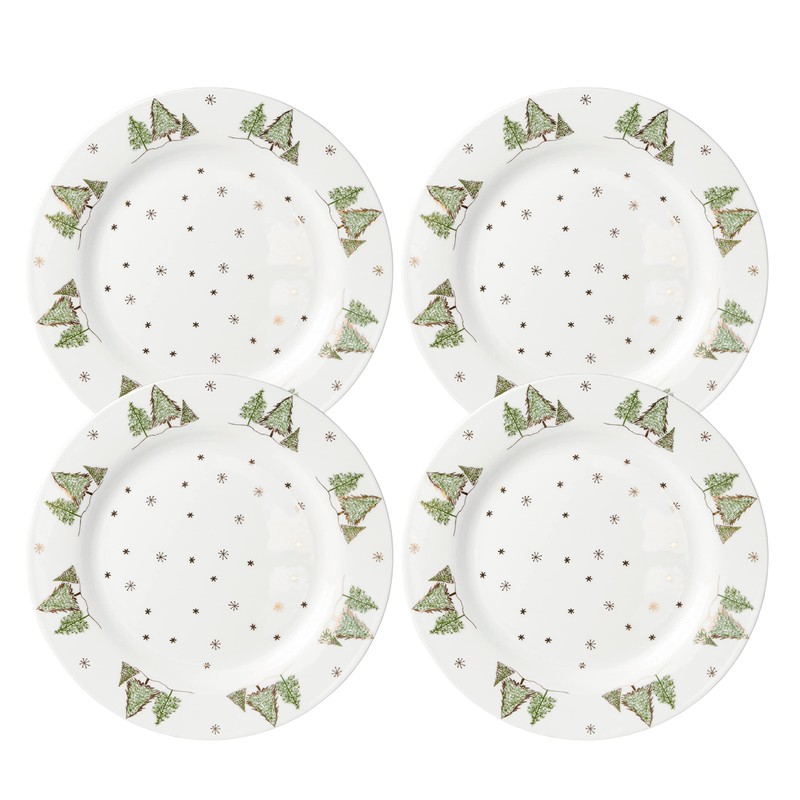 Gracie China Gold Green Pine Tree Dinner Plate 10.5-Inch (Set of 4)