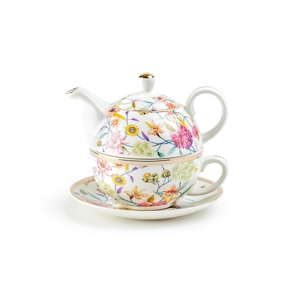 Gracie China Shop Spring Flowers with Hummingbird Fine Porcelain Tea For One Set, Regular