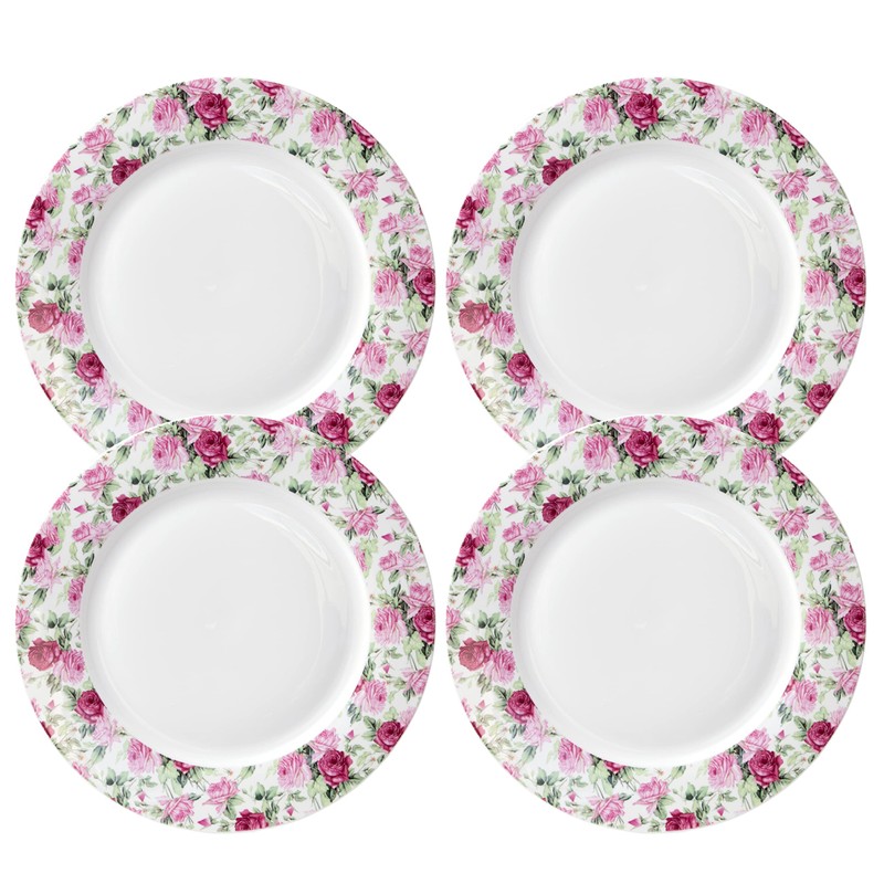 Gracie China Summer Rose Chintz Border Dinner Plates, Set of 4 (10.5-Inch)