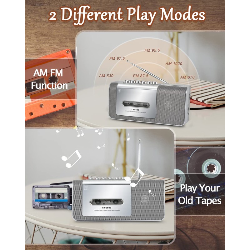 - 🎁【Save Your Precious Memories】If you like old fashioned devices,then you're going to love this cassette tape player.Equipped with high-definition microphone and DSP chip,this tape cassette recorder can record external sounds into the blank tape easily.Whether record the current mood, or express your love, it all can be recorded into the tape.At the same time, you can also record your favorite radio programs through this cassette player/recorder, and keep your favorite programs inside the tape.