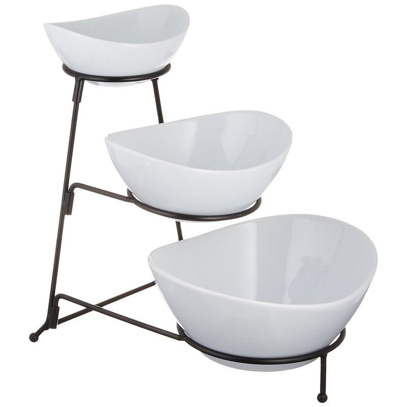 Gracious Dining Three-Tier Oval Serving Bowl Set, White And Black