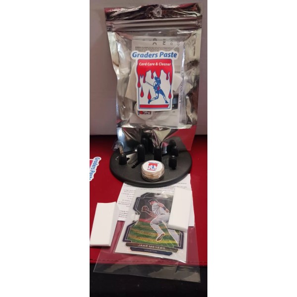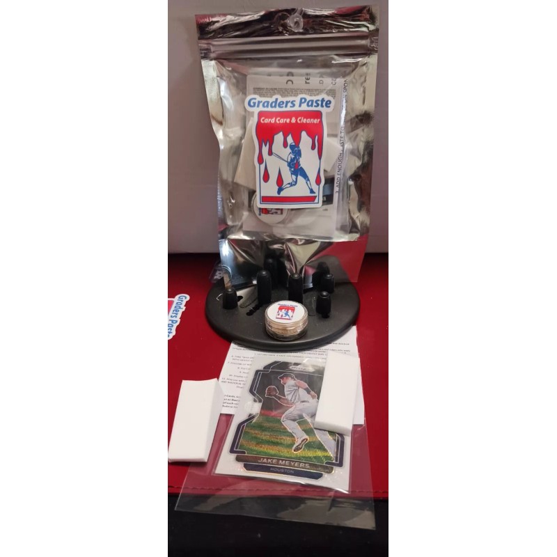 This GRADERS PASTE Card Care & Cleaner is a must-have for any collector of sports trading cards. This product, manufactured by LOCKER CARDS, comes in a pack configuration of 1 - 8-10 gram container of paste, 2 sponges 1 to apply paste and 1 to remove paste, instructions and a demo card worth value for you to practice with. Cases contain 10 kits and in 1 of these 10 kits is a card worth $100 up to $500 case hit.