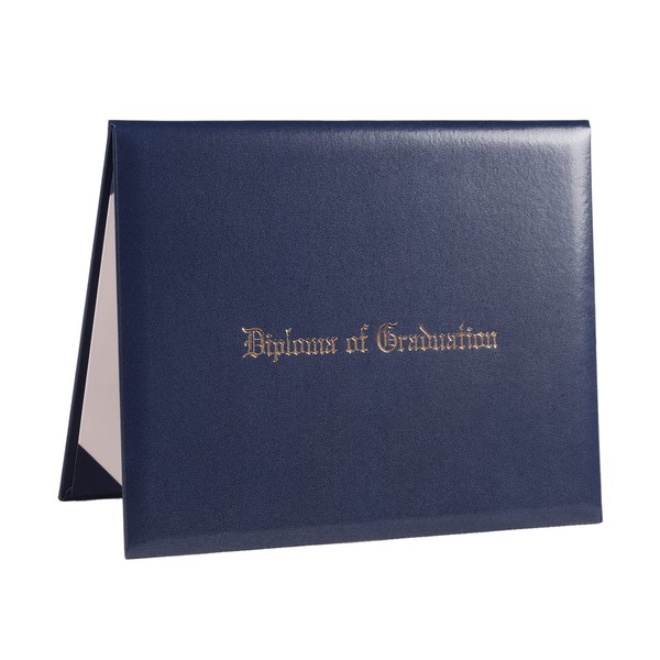 GRADFTY Imprinted Diploma Cover 8.5 x 11, Leatherette Padded Certificate Covers, Graduation Document Holder Letter Size, Navy Blue