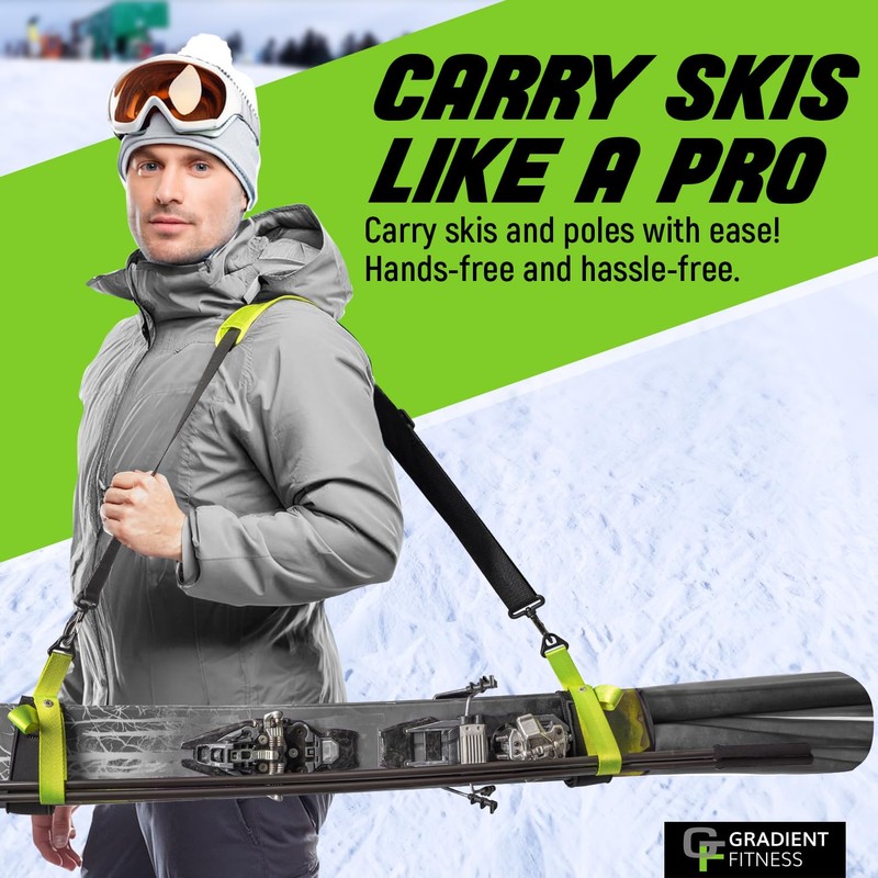 Gradient Fitness Shoulder Ski & Pole Carrier Strap, Ski Straps, Snowboard & Downhill Skis Strap