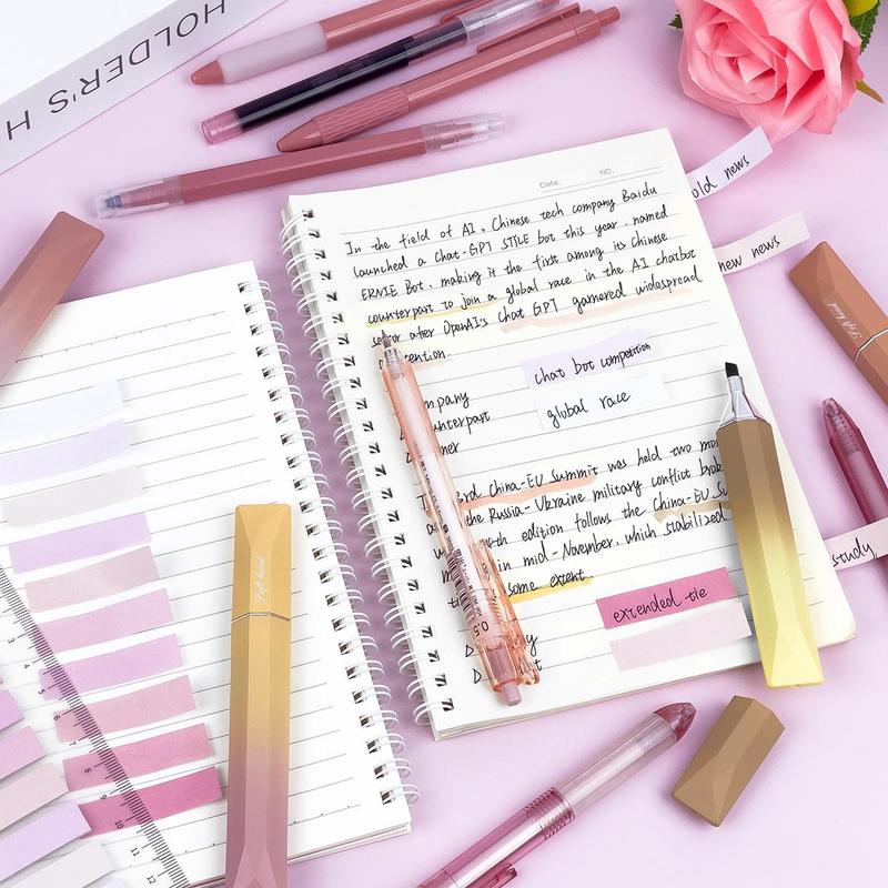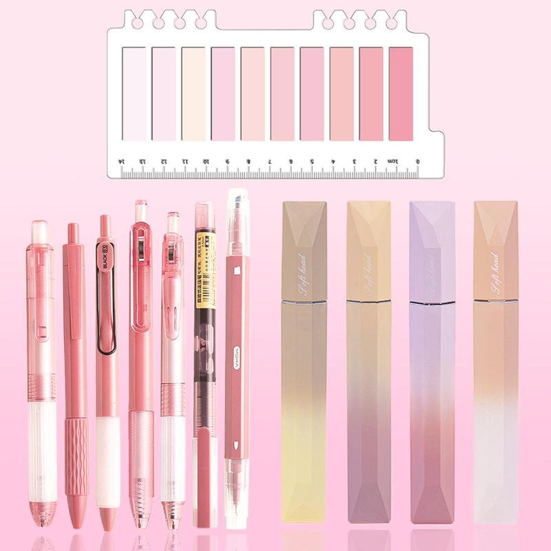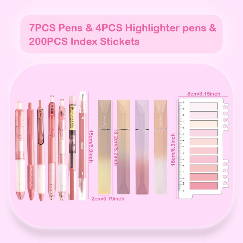 Gradient Gel Pen Set, Including Gel Pens & Highter Pemarkers & Index Sticker, Multifunctional Writing Stationery Set, Opening Season Stationery Set, Fall Gifts, School Supplies