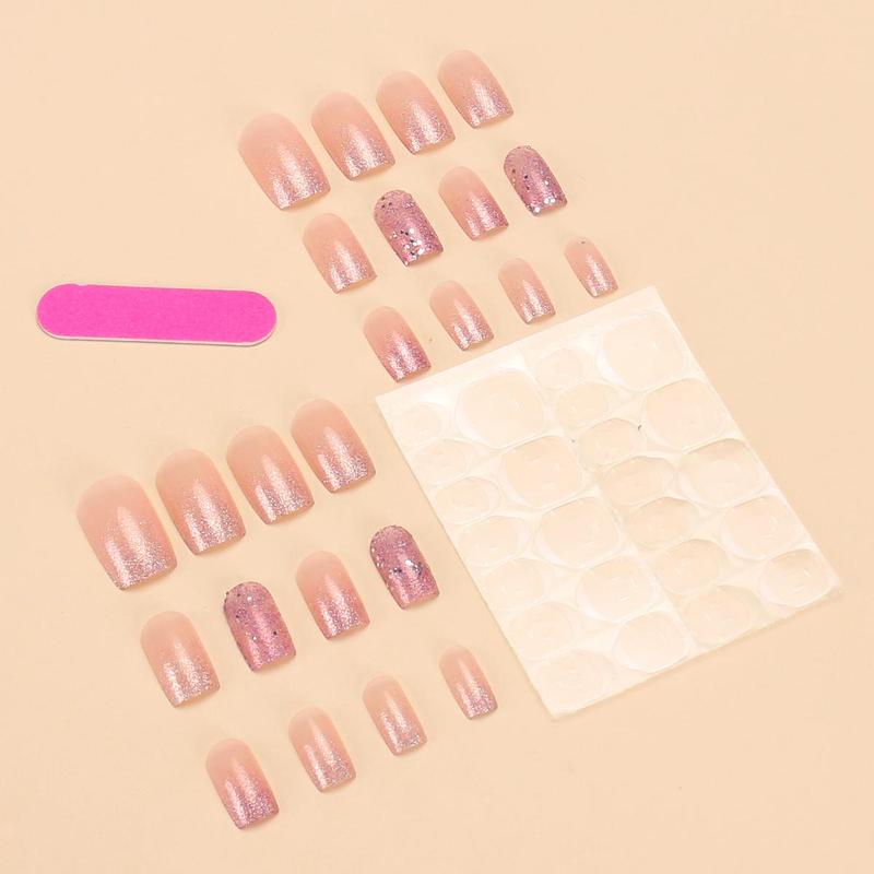 Gradient Glitter Fake Nail Art Kit, 24pcs Short Square Press on Nails for Women & Girls DIY Nail Art, Elegant Stick on Nails Kit
