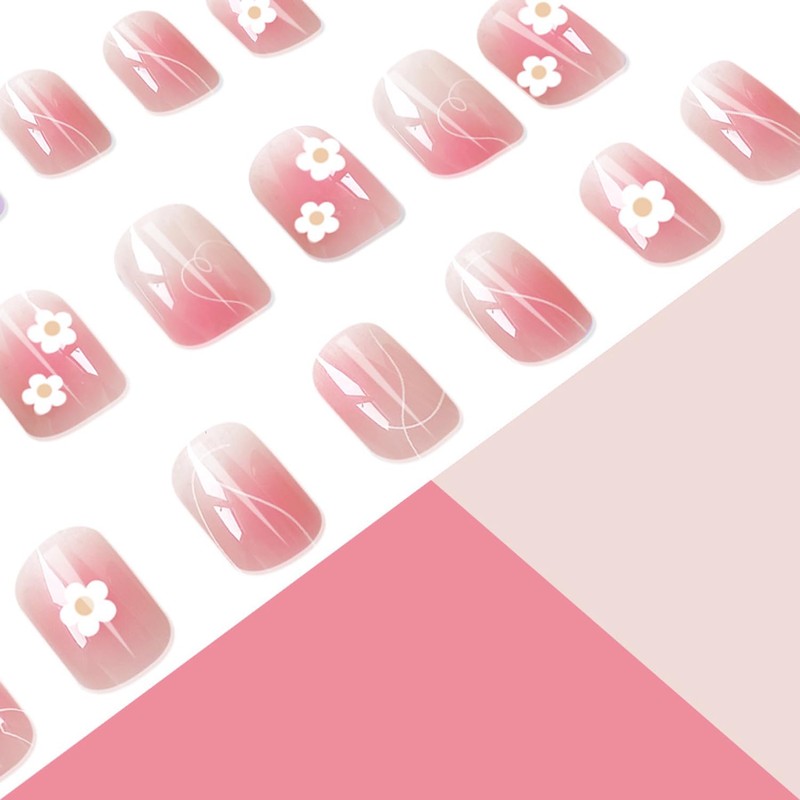 - Package: 24Pcs Small Floral short square press on nails, 24 pieces of jelly glue, 1 mini nail file, 1 wooden stick