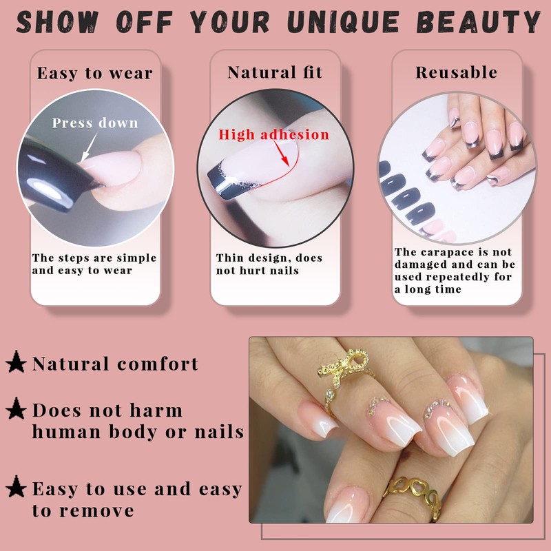 - 【Short press on Nails】made of good acrylic Eco-Friendly ABS material, firm and not fragile or break or fade, more glossy, wouldn't hurt your nails,Softness is similar to human nails. press on Nails】made of good acrylic Eco-Friendly ABS material, firm and not fragile or break or fade, more glossy, wouldn't hurt your nails,Softness is similar to human nails.