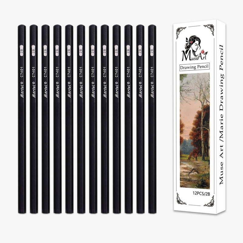 Graduated Drawing Sketching Pencil Set - 12 Pieces,Graphite,(2B/4B/6B/8B), Ideal for Drawing Art, Sketching, Shading, Artist Pencils for Beginners & Pro Artists (12pcs 2B)