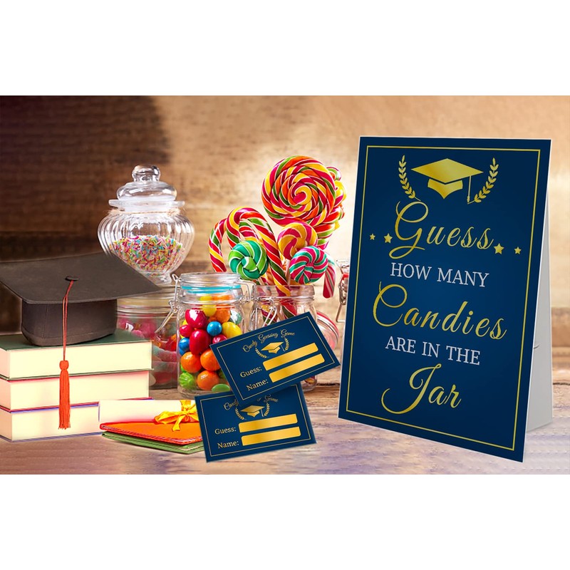 Graduation Candy Guessing Game, Guess How Many Candies Are In The Jar (Pack of 1 Sign And 50 Guessing Cards), Graduation Decorations, Graduation Party Game, Graduation Party Supplies (02)