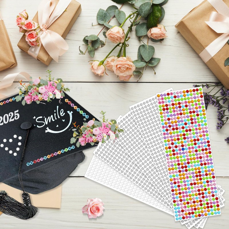 - GRADUATION CAP DECORATION KIT: You will get 3 sheets silver rhinestones, 1 sheets pearl rhinestones and 1 sheets colorful rhinestone to decorate your graduation cap. If you want to create your own DIY style graduation cap, I believe these sparkling decorations will help you make your design look more perfect
