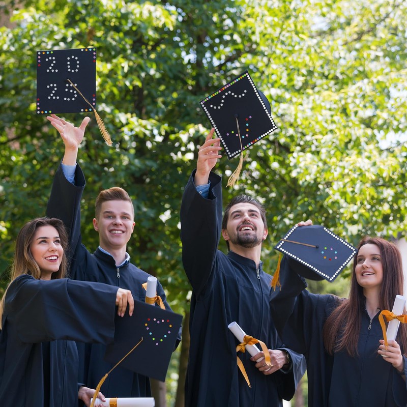 - STAND OUT IN THE CROWD: Make a beautiful graduation cap with our glitter rhinestone set and give it to yourself or someone who is about to graduate (your child or friend), bringing sincere and warm wishes to their graduation party. Help them stand out on their big day, express their happiness and make their graduation memorable