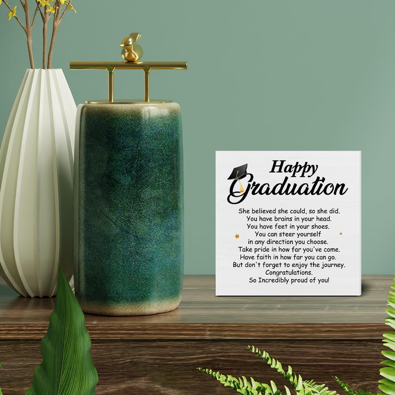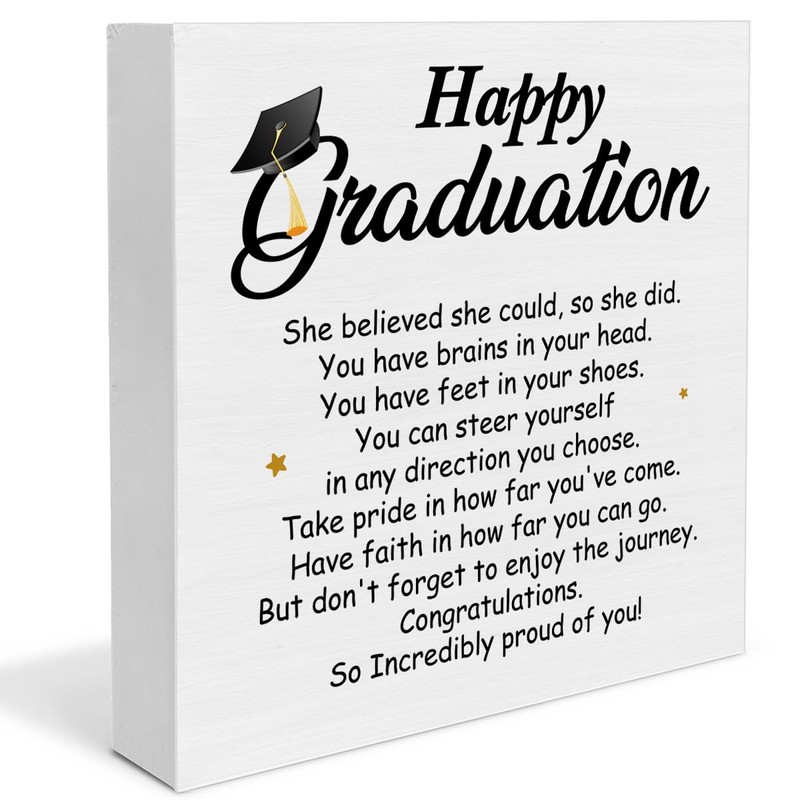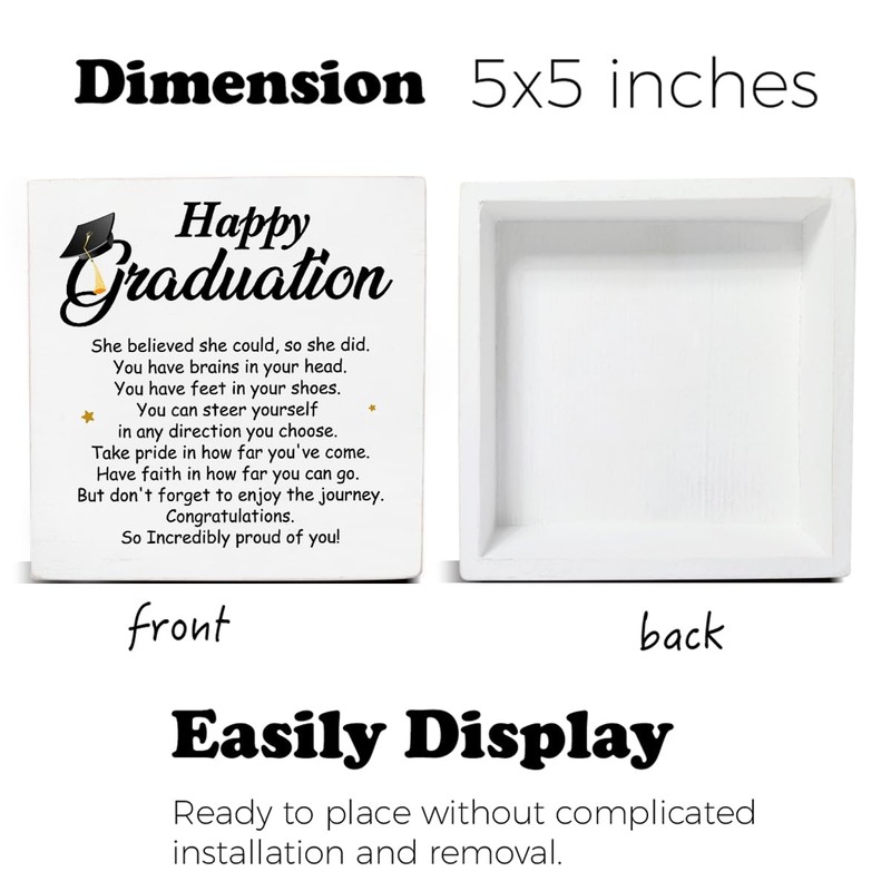 Graduation Decor for Her, Cool Graduation Desk Decorations Wooden Sign, Inspirational Wood Plaque Block Sign Rustic Home Decor 5 x 5 Inches
