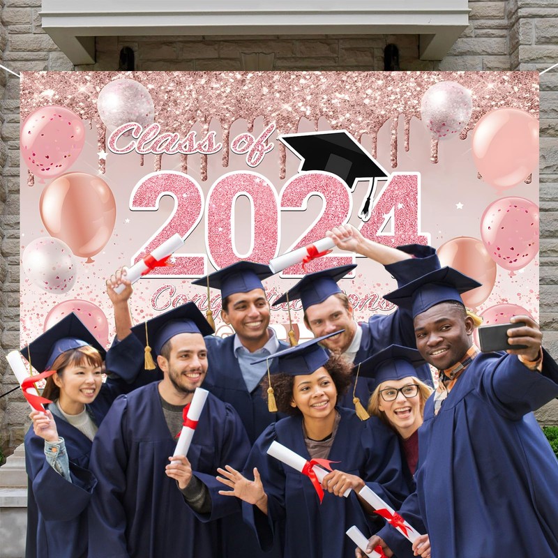 Graduation Decorations 2024, 2024 Graduation Banner for Men Women,Congratulations Graduates Banne Backdrop Masters Graduation Party Supplies (pink)