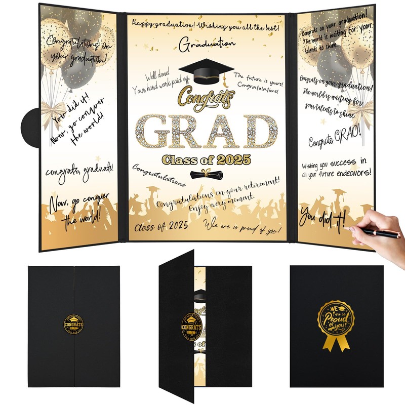- Package Included - This Black and Gold "Congrats Grad" guest book (pen not included) comes ready to use, with no assembly required. Simply pass it around at your graduation party for guests to fill with their heartfelt wishes. Suitable for displaying or storing after the event, capturing memories in a beautiful way.