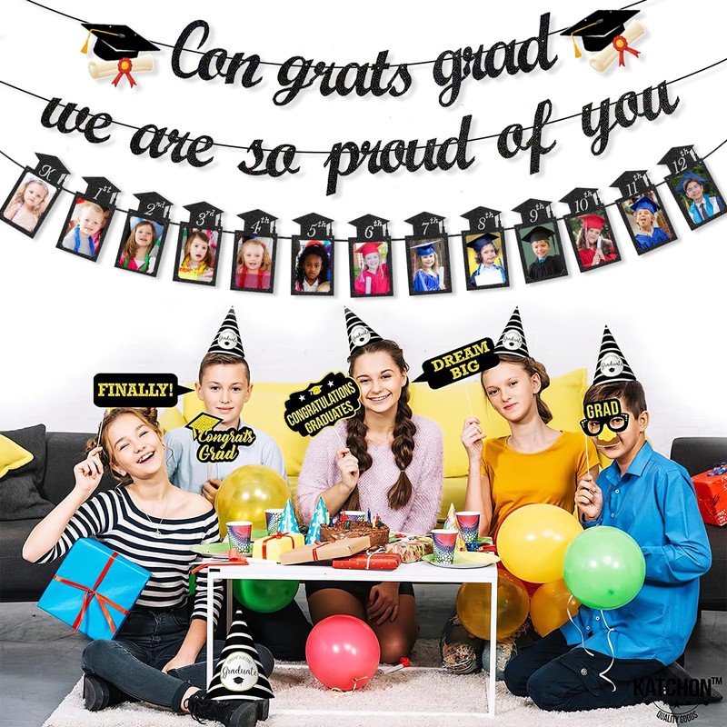 - Decoration for Graduation: Celebrate your graduation party with the set of photo banner with some iconic photos fixed on the paper to take you back to good memories from kindergarten through 12th grade. And this is also very useful for children's room decoration. The banner hang annual photos of your child from grades 1 through 12 to preserve this wonderful memory.
