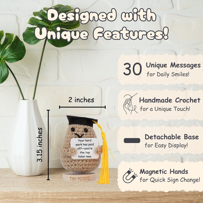 - { Adorable Design - For College, High School, or PhD } Whether they’re celebrating high school graduation gifts for her or phd graduation gifts, this crochet potato positive gift hits every milestone with warmth and whimsy, awesome as college graduation gifts for women, college graduation gifts for him, or male graduation gifts, makes a thoughtful and sentimental idea for anyone starting a new chapter