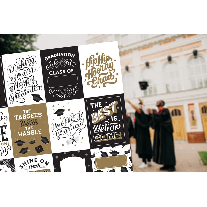 - Graduation cap scrapbook paper with fun and festive designs is ideal for creating DIY graduation crafts